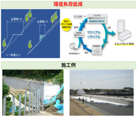 特徴としては、製品特性の軽量性、自立性を活用し道路工事に伴う環境負荷を低減致します、また、当社グループ独自技術のリサイクル原料を活用し更なる低減を実現しながら自然災害時の早期復旧、気候変動対策による護岸改良、老朽化が進む道路構造物の長寿命化などへ貢献すべく努めてまいります。